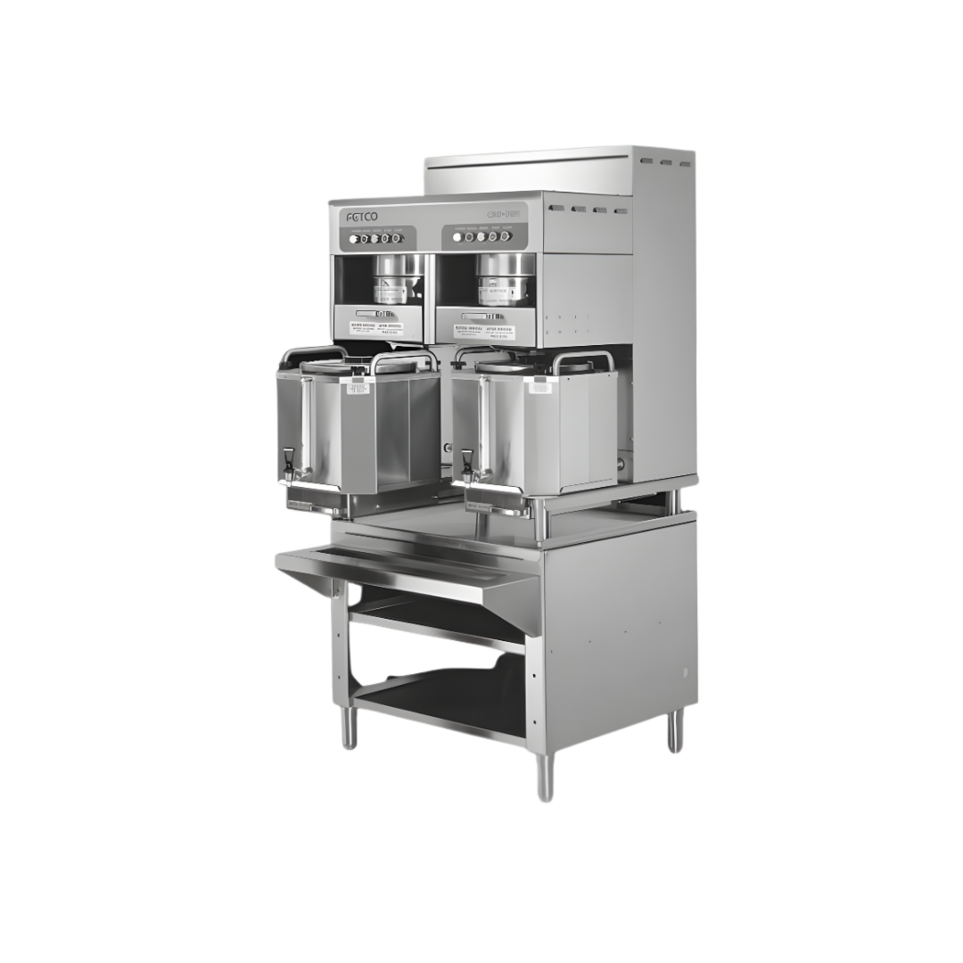 El CBS-72A es un sistema profesional de preparación de café filtrado diseñado para operaciones que requieren producción extremadamente alta y servicio continuo. Su configuración de doble estación permite preparar hasta 12 galones por ciclo, lo que lo convierte en una solución ideal para hoteles, estadios, centros de convenciones y servicios institucionales de gran escala.